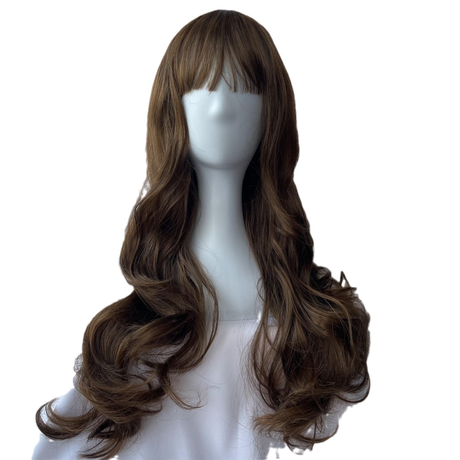 Wig Style: Long Curly Hair with Straight or Side-Swept Bangs