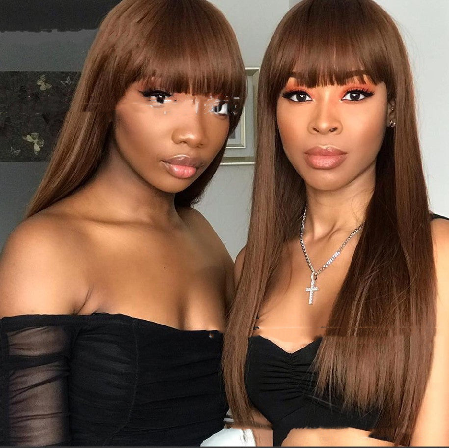 Qi Bangs Black And Brown Long Straight Hair